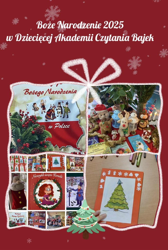 Życzymy wszystkim dzieciom, nauczycielom i rodzicom radosnych i spokojnych Świąt Bożego Narodzenia oraz pomyślności w Nowym Roku 2026. Zapraszamy na kolejne zajęcia w Dziecięcej Akademii Czytania Bajek już w styczniu.