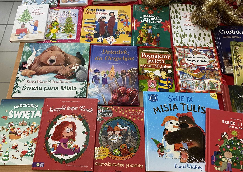 Zajęcia pod hasłem „Świąteczne opowieści” rozpoczęły się krótką rozmową o przygotowaniach do świąt oraz tradycjach bożonarodzeniowych. Wykorzystując książkę „Tradycje Bożego Narodzenia w Polsce” przybliżyliśmy uczestnikom zwyczaje regionu kujawsko-pomorskiego. Uzupełnieniem tej części był film edukacyjny „Wigilijny stół” ze zbiorów biblioteki. W dalszej części czytałyśmy młodszym dzieciom nowe książki, m.in.: „Krokodyl i żyrafa czekają na Boże Narodzenie” Danieli Kulot, „Święta Misia Tulisia” Davida Mellinga, „Święta pana Misia” Karmy Wilson. Starszym uczestnikom zaproponowałyśmy fragmenty książek: „Święta na świecie” Sofii Brand, „Niezwykłe święta Kornelii” Agnieszki Stelmaszyk, „Co robią choinki po świętach” Katarzyny Śpiewak.