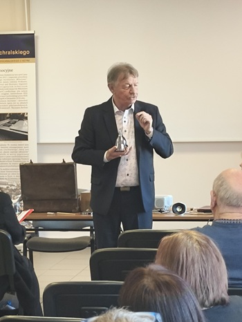 Prelekcję wygłosił Michał Poczobutt – emerytowany nauczyciel, który przez 31 lat pełnił funkcję dyrektora Szkoły Podstawowej im. Jana Czochralskiego w Kcyni. Był on inicjatorem nadania placówce imienia wybitnego uczonego, a także uczestnikiem i konsultantem kilku filmów dokumentalnych poświęconych jego życiu i osiągnięciom. W swoim wystąpieniu przybliżył uczestnikom sylwetkę Jana Czochralskiego, jego dorobek naukowy oraz znaczenie odkryć dla współczesnej nauki i technologii. Za wieloletnie działania na rzecz przywracania pamięci o profesorze oraz popularyzację jego osiągnięć w 2023 roku Michał Poczobutt został uhonorowany Nagrodą prof. Czochralskiego przyznaną przez Senat Politechniki Warszawskiej oraz Kujawsko-Pomorskie Centrum Naukowo-Technologiczne im. prof. Jana Czochralskiego w Toruniu.